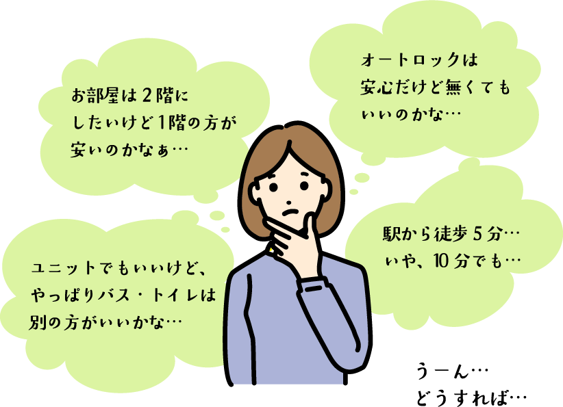 その中でも、みなさん「譲れない条件」を自分の中で決め、お部屋探しをされています。