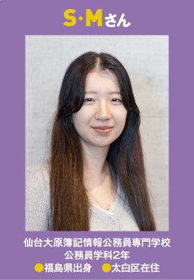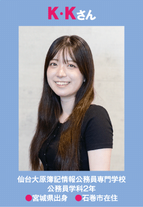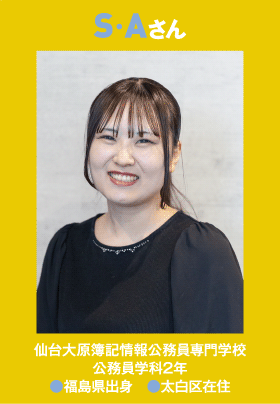 - 出かけるのが好きなので、友だちと福島県内や山形に行ったり遠出していますが、最近は面接の模擬回答を考えたり、試験準備にも時間を宛てています。